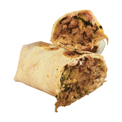 Tortilla, roszponka, pomidor, ogórek, cebula czerwona, warzywa grillowane (papryka, pieczarki, cukinia). Sosy i składnik do wyboru, dzik szarpany, śmietana 18%