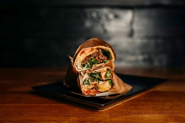 Mięso do wyboru, ser cheddar, pomidor, cebula, ogórek, sałata, sosy własne, sos meksykański