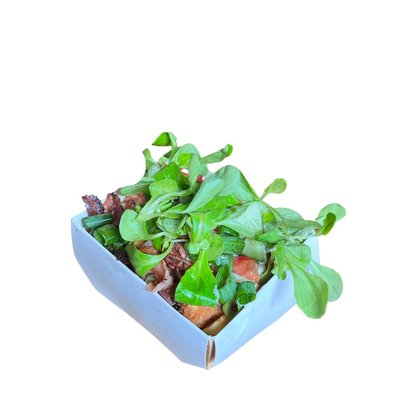 frytki, ser camembert, ser topiony, ser w panierce, mozzarella, sos serowy własnej roboty, pomidor, ogórek, szczypiorek, bekon, cebula prażona, cebula, sałata, rukola, roszponka